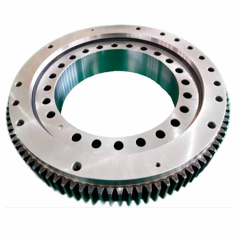 汽车起重机回转轴承用于移动式汽车起重机,由于其在工作过程中承受轴向力、径向力和倾覆力,一般采用外齿式单排四点接触球回转轴承或双排球(八点接触球)回转轴承。